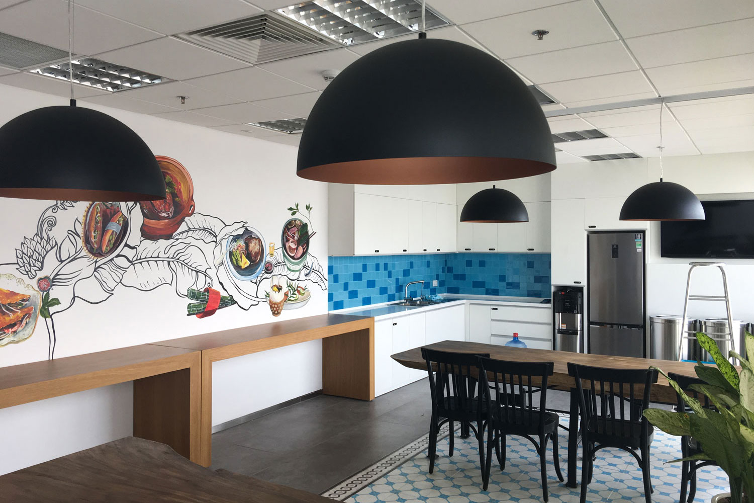 Adapting to this new normal, workplace designers adopt designs that bring the home feeling in the office and enable them to take time out and relax. In addition, researchers found that when an office space aligns with employees’ self-image, it will enhance their sense of belonging and bring success to individual performance at work. Applying those philosophies, the fully-equipped cafeteria and comfortable break areas in our office design for Roche Vietnam create the home-from-home mental ambiance and visual effects for people.