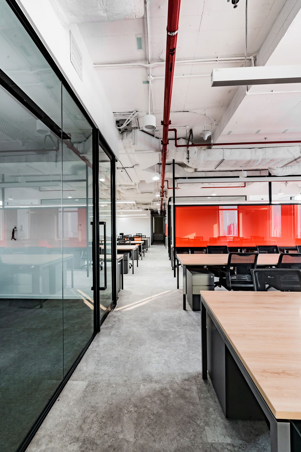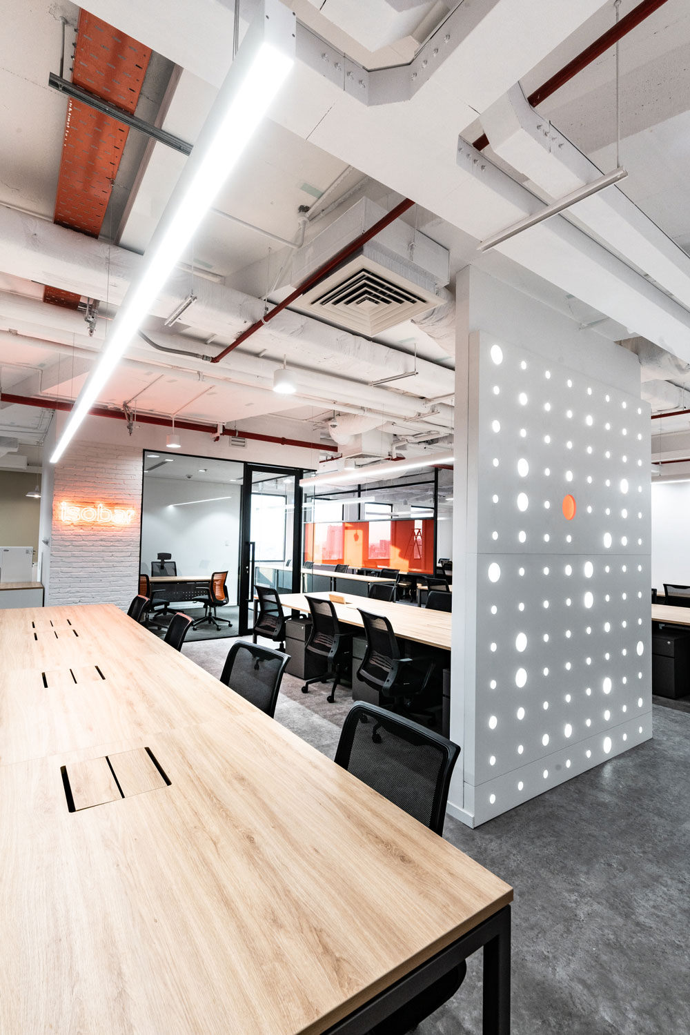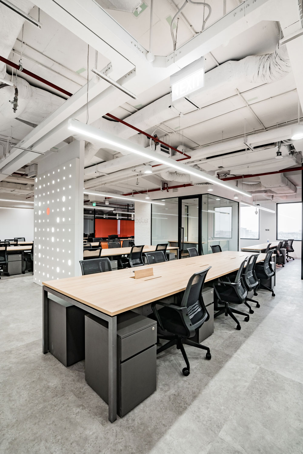 Coming up with the umbrella concept of Clean & Bright space, we mix and blend the colors representing the DAN brand with the purpose of creating a harmonized palette, which is not only unique and outstanding but also integrated for the office space. The primary color of the office is white with various bright color blocks such as red, green, orange, yellow to emphasize and embrace the diversity in the team nature. We want to ensure that our client’s people – DAN team members – are united under one roof of DAN, regardless of their departments or brands.