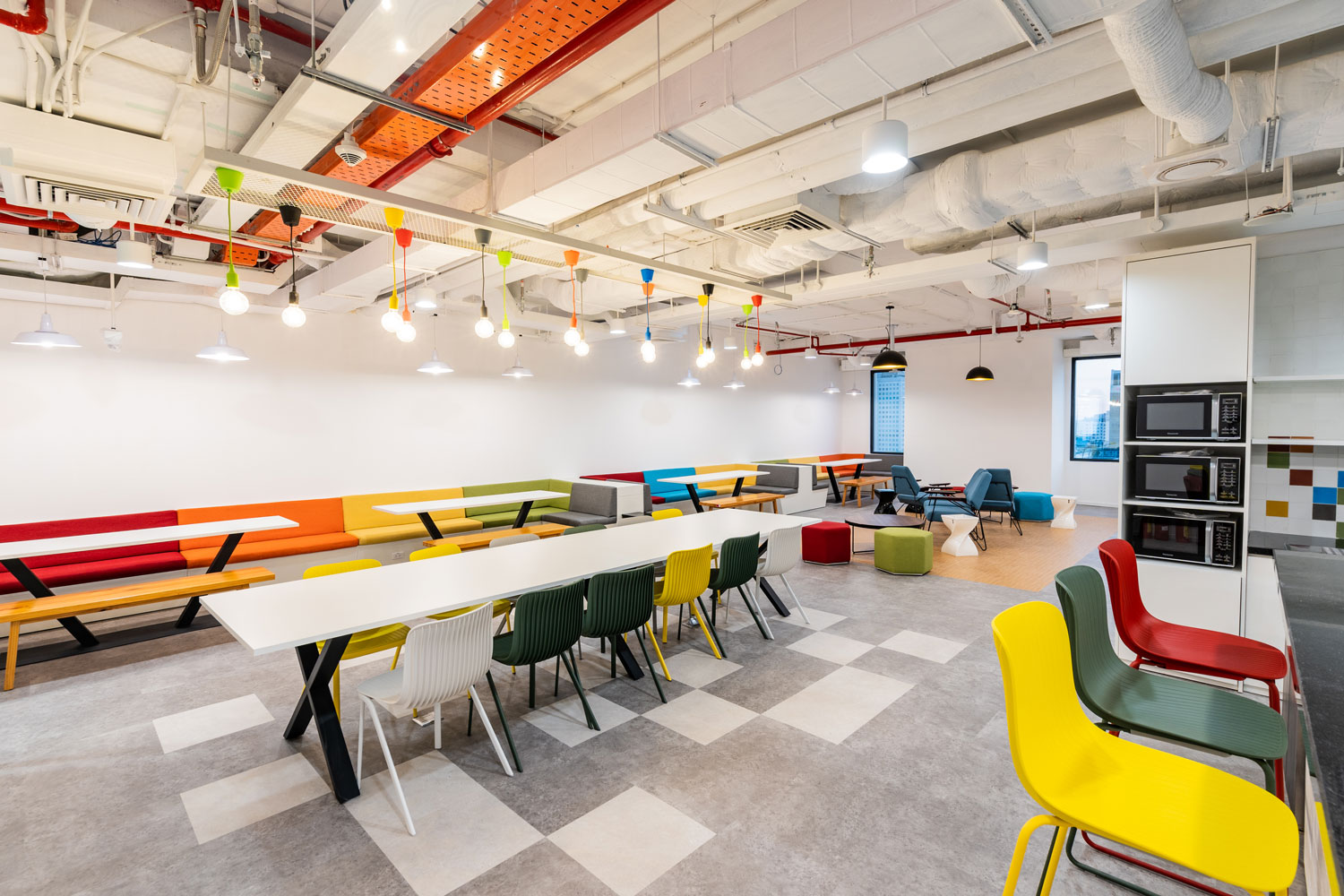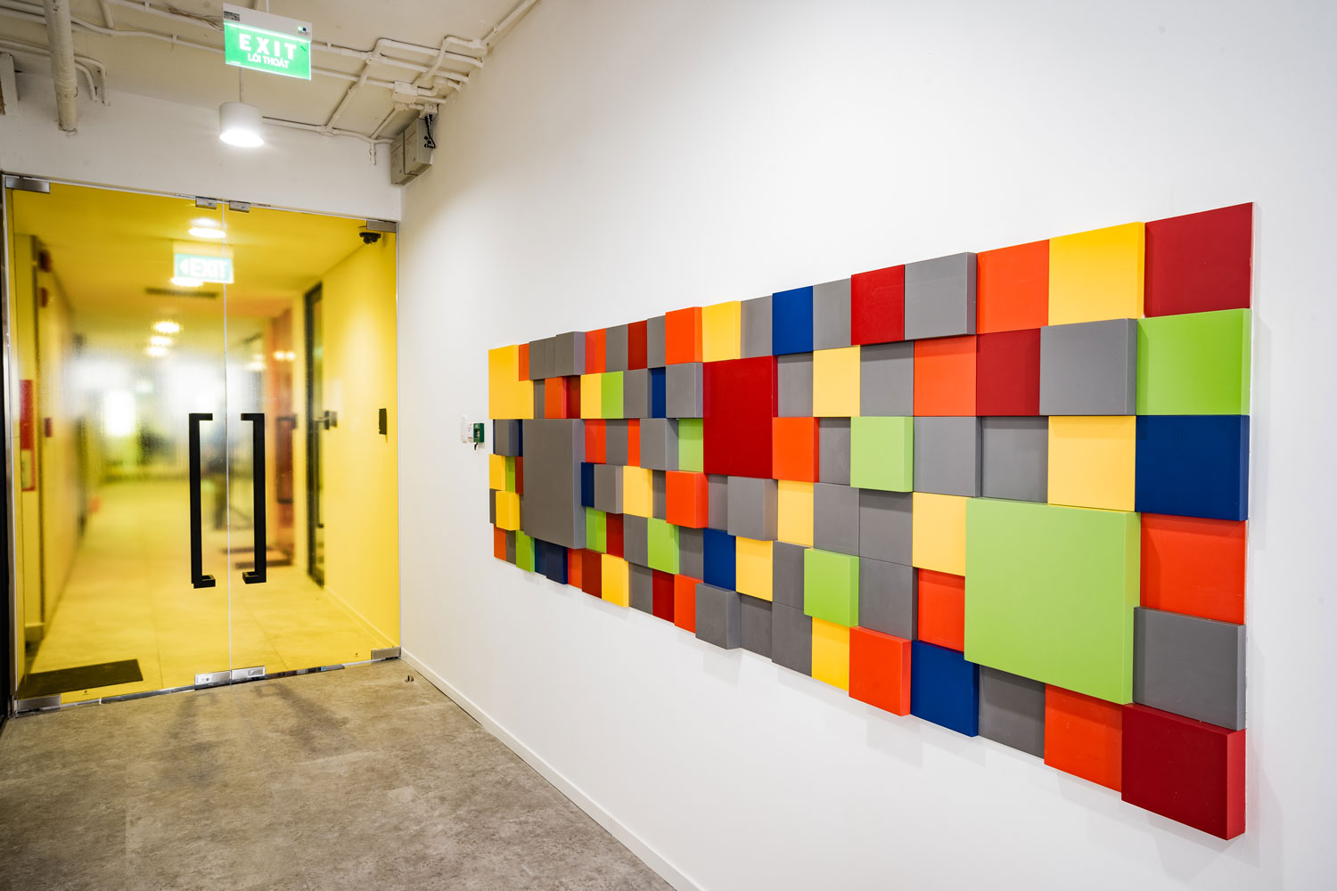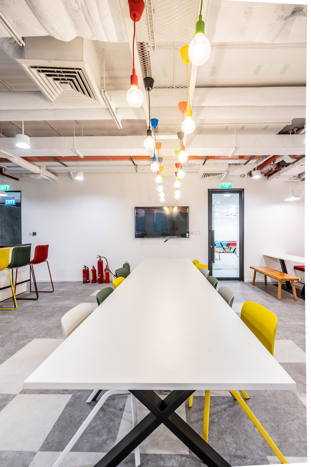 Coming up with the umbrella concept of Clean & Bright space, we mix and blend the colors representing the DAN brand with the purpose of creating a harmonized palette, which is not only unique and outstanding but also integrated for the office space. The primary color of the office is white with various bright color blocks such as red, green, orange, yellow to emphasize and embrace the diversity in the team nature. We want to ensure that our client’s people – DAN team members – are united under one roof of DAN, regardless of their departments or brands.