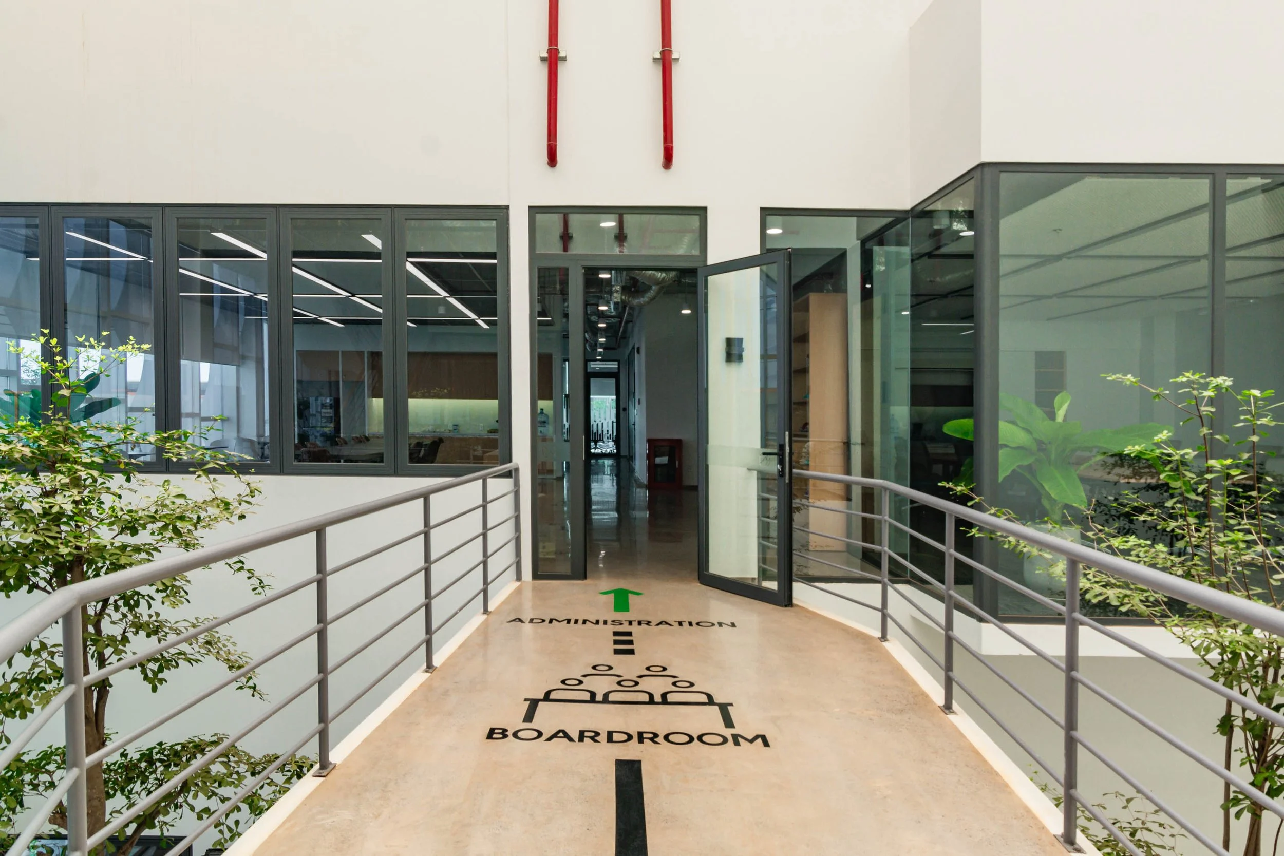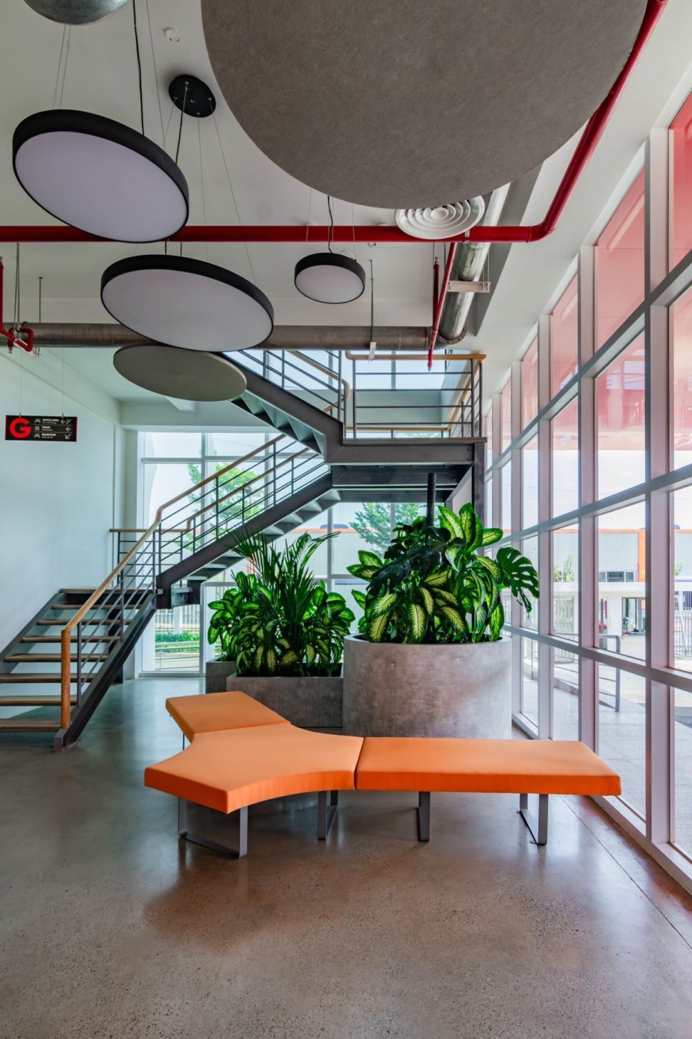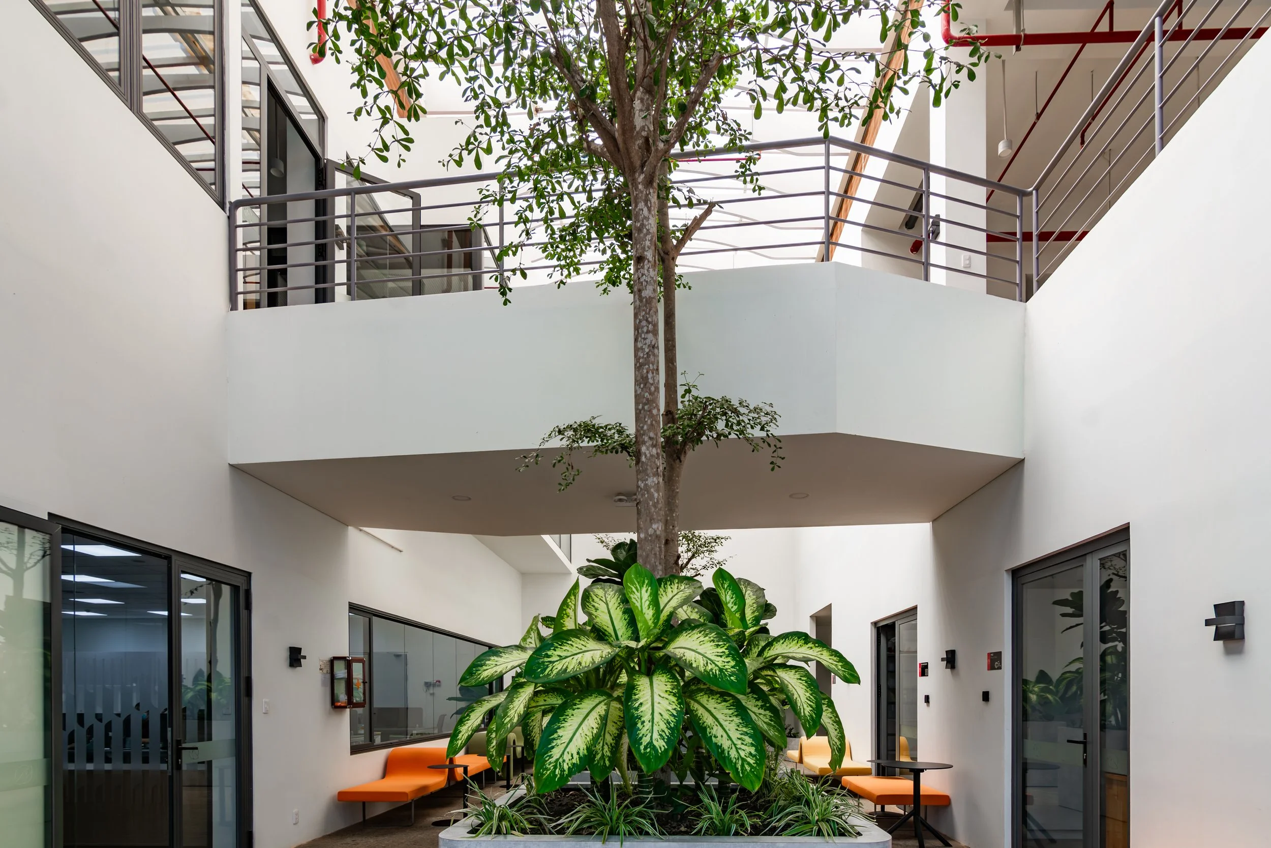 Experience: Bright lobby, open offices, lush indoor greenery, canteen, gym, and social areas that foster well-being and connection